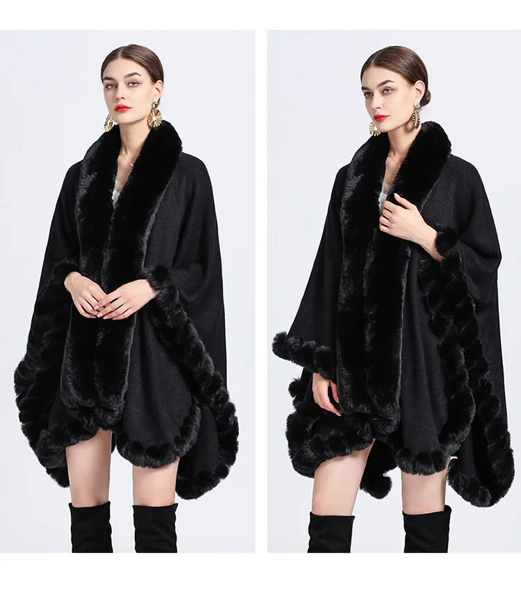 Women Cloak Coats Capes Mid Length Fur Collar Ponchos quantity